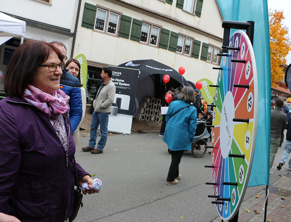 Das Hauptgeschehen spielt sich rund um den Marktplatz ab. Hier stellen zum Beispiel die örtlichen Autohäuser wieder ihre neuesten Modelle vor. Diese Autoschau wird von Emily Moll und Peter Schoch organisiert. Wie es sich für einen Verkaufsoffenen Sonntag gehört, haben an diesem Tag natürlich auch viele Einzelhändler ihre Geschäfte geöffnet und laden zum gemütlichen Bummel ein. Vom Buchladen über das Fahrradgeschäft bis hin zum Optiker sind die unterschiedlichsten Händler vertreten.